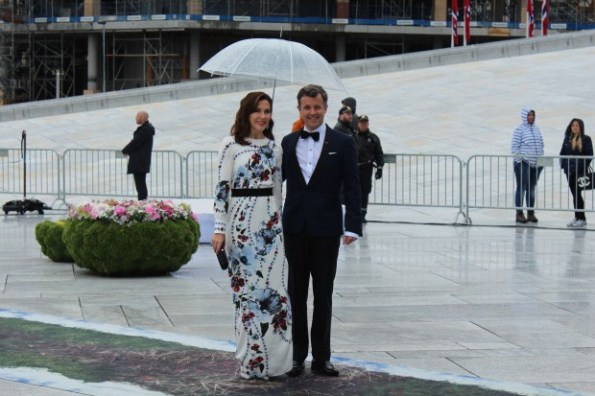 | Crown Prince Frederik and Crown Princess Mary of Denmark arrive at the opera dinner in Oslo, May 2017. Photo: Oskar Aanmoen. |